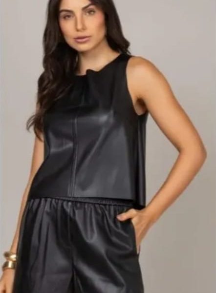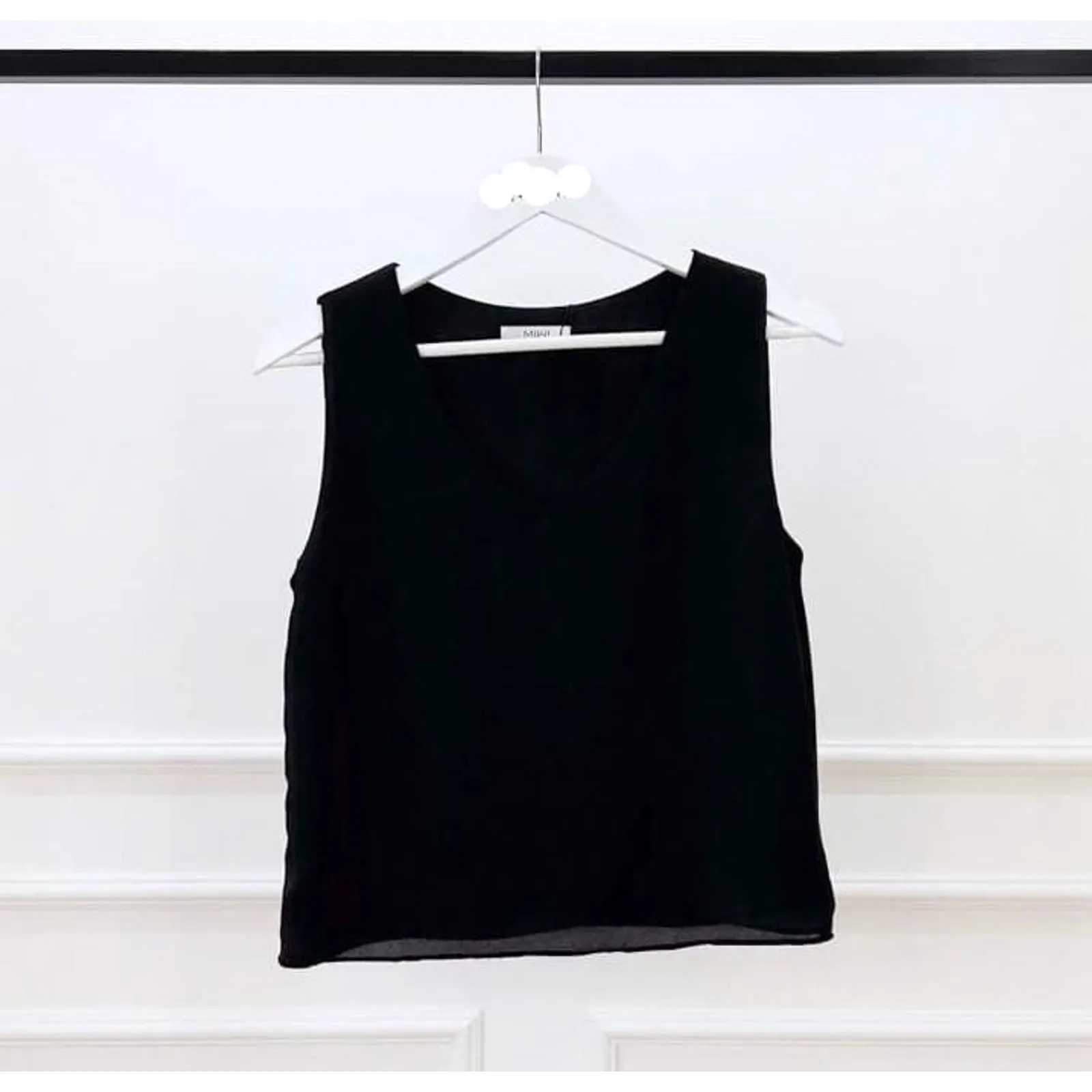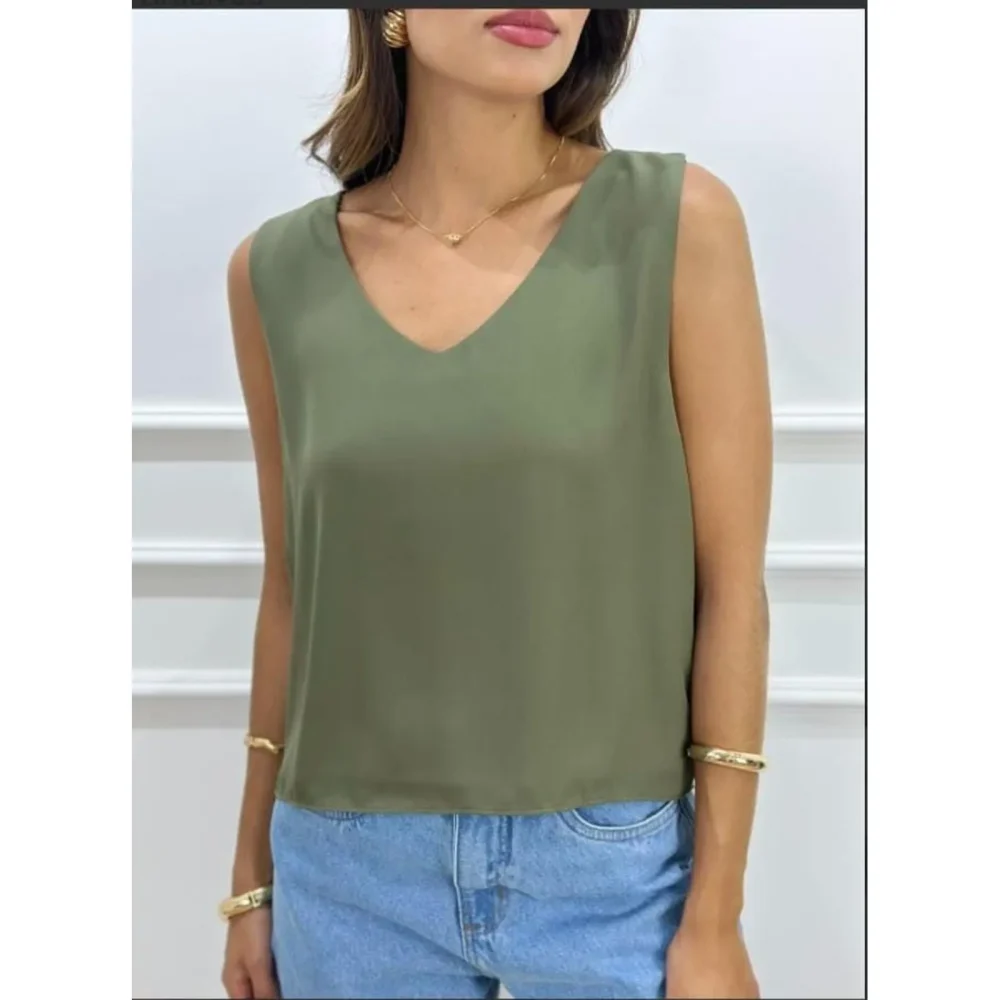 REGATA EM CREPE, TECIDO LEVE E FLUÍDO, GOLA “V”