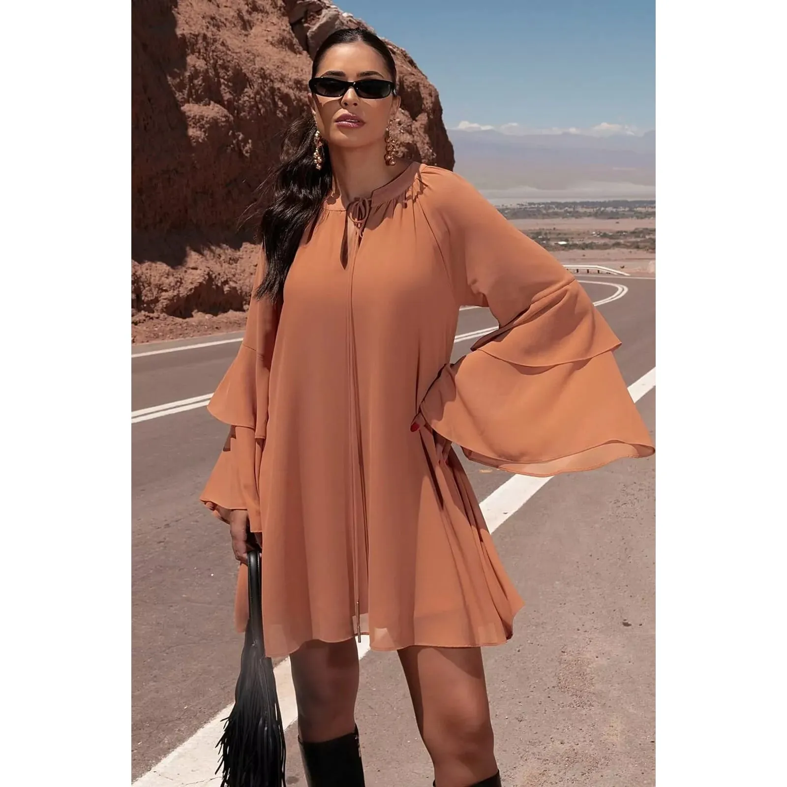 VESTIDO BOHO CHIC LISO