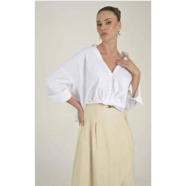 A gola é o grande destaque do modelo, adornada com ilhós que trazem um elemento de estilo e originalidade. . Esse detalhe confere ao vestido uma aparência contemporânea, perfeita para quem busca se destacar.