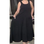 VESTIDO CONFECCIONADO EM VISCOSE DE ALTA GRAMATURA, RODADO E SOLTINHO, COM RECORTES E BOLSOS NA FRENTE